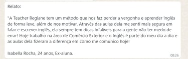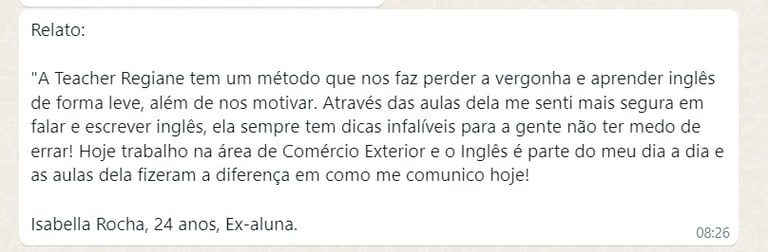 Foi assim que eu colecionei histórias de alunos que conseguiram destravar o inglês de verdade — cada um com a sua necessidade específica, no seu tempo, mas sempre com resultados reais.