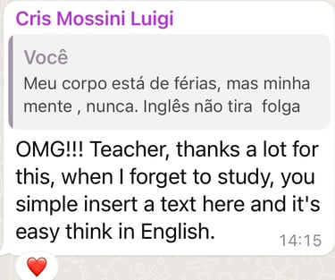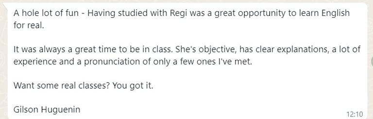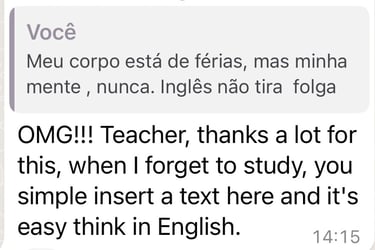 Nesse tempo, ajudei pessoas em situações reais e muitas vezes de urgência: alunos que precisavam passar em uma entrevista, se preparar para um consulado, apresentar um projeto internacional ou até viajar com segurança em poucos dias.